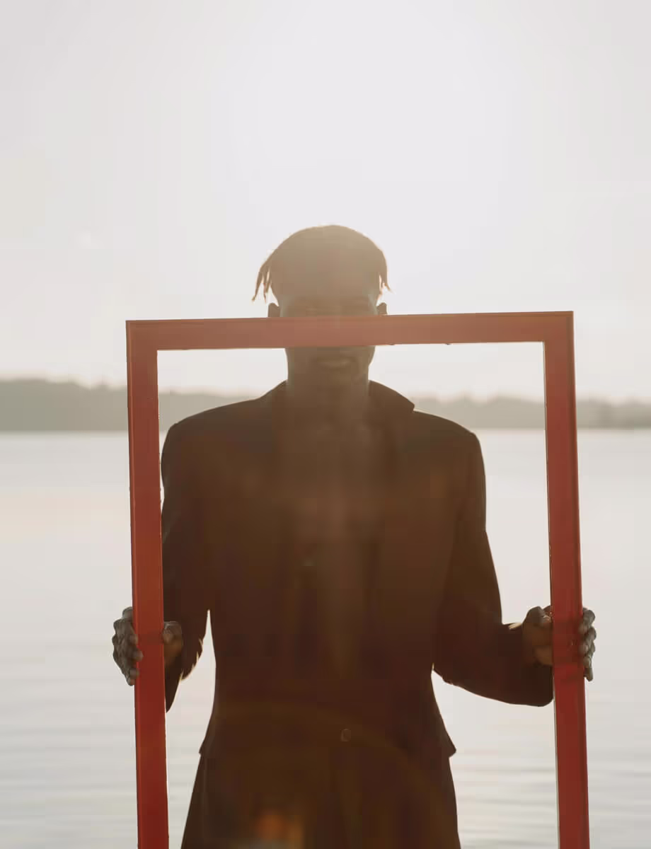A man stands amidst tall grass, surrounded by nature, embodying tranquility and connection to the outdoors.